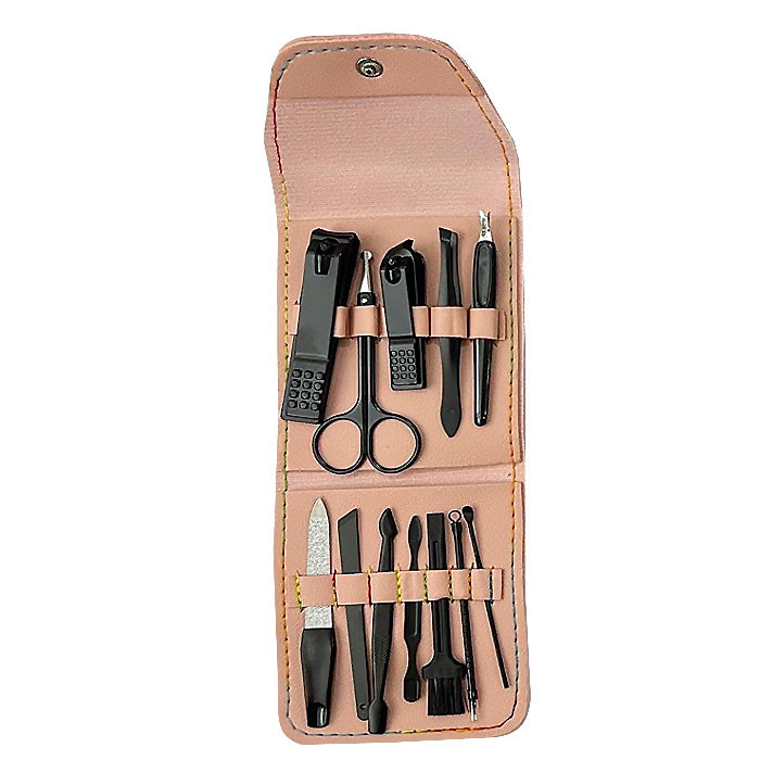 ناخن گیر کوچک مخصوص دست، ناخن گیر بزرگ مخصوص پا، قیچی سر منحنی، گوشت گیر، سوهان ناخن، موچین انبری، ابزار تمیز کردن زیر ناخن، پوشر، ابزار تمیز کردن گوشت ها و پوسته های دور ناخن، ابزار تمیز کردن پوسته های روی ناخن